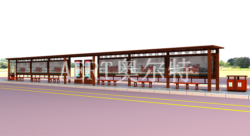 仿古候車亭和燈箱遮擋所需要的頂棚。針對雨、雪、冰雹、雷、風等比較惡劣的天氣,頂棚可以為乘客提供遮擋的場所。