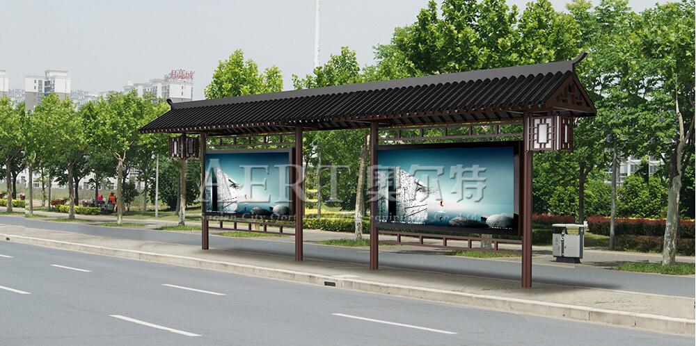 仿古公交車候車亭在多處古韻景區(qū)建設(shè),將“仿古、環(huán)保、便捷”的城市發(fā)展新概念進(jìn)行完美融合,在方便市民公交出行的同時(shí)進(jìn)一步落實(shí)了當(dāng)今國(guó)際古城保護(hù)的最新理念。仿古候車亭采用金屬材質(zhì),仿古設(shè)計(jì),外觀用塑粉進(jìn)行高溫靜電噴塑,整體造型非常美觀。為了能夠展現(xiàn)城市的文化特色,候車亭整體呈現(xiàn)出的是中國(guó)傳統(tǒng)建筑中的棕紅色,候車亭頂棚采用鏤空來(lái)裝飾,生動(dòng)靈巧的仿滴水檐裝飾一應(yīng)俱全,真正與周邊傳統(tǒng)建筑環(huán)境做到相濡相融。