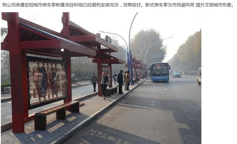 候車亭廠家奧爾特承建安陽(yáng)新式候車亭,為市民避風(fēng)雨 提升文明城市形象
