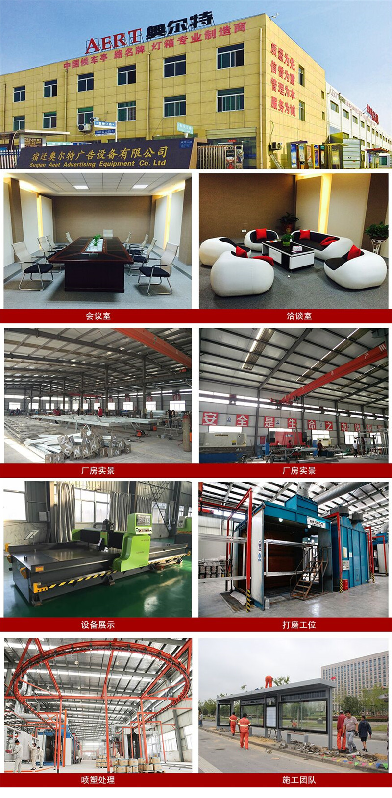 今日奧爾特工廠正式開工,年前有產品沒來得及做的客戶可以開始下單嘍。奧爾特公共設施專業設計、制作、安裝公交候車亭 公共自行車亭 交通標志牌 指路牌燈箱 路名牌 廣告垃圾箱 閱報欄等。再次恭祝大家雞年大吉!