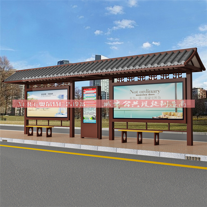 中式花格是具有濃濃中國(guó)味的裝飾元素,在如今,中式花格被融入到各個(gè)你可以想到的空間中,作為一種裝飾,作為一個(gè)符號(hào),而奧爾特人也別具匠心的把它運(yùn)用到公交候車亭招呼站的款式制作上。